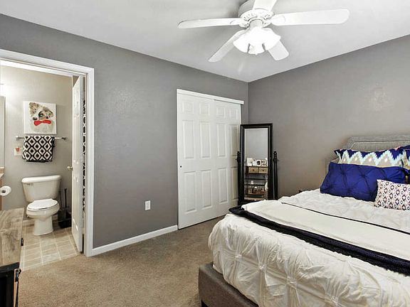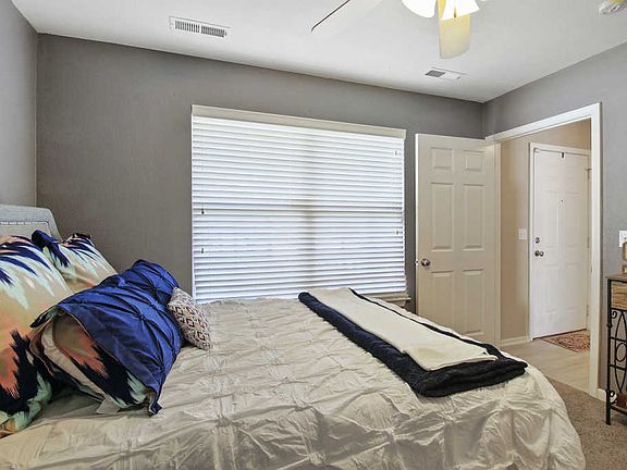 This adorable 2BR/2BA home in the desirable Ashland Park subdivision has been beautifully maintained, is low maintenance and has a great layout! The home features split bedrooms, each with their own adjoining full bath, separated by a spacious open living and dining area. Enjoy thoughtful upgrades such as wood laminate flooring, a finished garage and added storage in the laundry area. Spend time relaxing on the patio in the fully fenced backyard or on the charming front porch with white railing! Conveniently located with easy access to major interstates and bus lines, shopping, restaurants and entertainment plus enjoy a lovely neighborhood park and many paths throughout the subdivision.