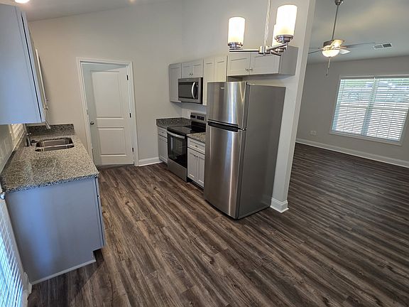 BRAND NEW 3 bedroom 2 bath single family home. Stainless steel appliances to include refrigerator, automatic ice maker, stove with microwave above, dish washer and garbage disposal. Granite countertops. LVT flooring throughout NO carpet. Intrusion alarm. Cathedral ceiling in living room and kitchen. Ceiling fans in all bedrooms and living room. Custom bath mirrors. Rear patio. Tall kitchen sink faucet. Large washer & dryer room. Concrete drive/parking. Spacious yard. Good credit is a must. Tenant will be in charge of power, water & mowing. 18 month lease is required. Tenant pays for water, electric & mowing.