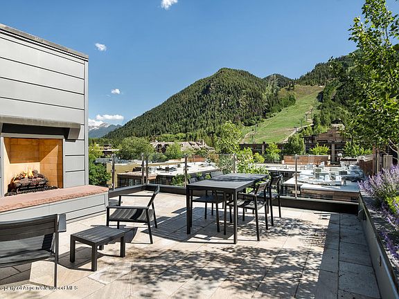 Best location in downtown Aspen, one block to the Gondola! This newly remodeled 4,924 square foot, 4 bedroom, 4.5 bath luxury multi-level penthouse features a stunning contemporary design with elegant finishes and furnishings. The spacious rooftop patio includes an outdoor kitchen, gas grill, spa, and direct views of Aspen Mountain. The light and bright open living area includes a beautiful gas fireplace and adjoining dining area with seating for eight and extends to a south-facing terrace with outdoor fireplace. The master bedroom boasts expansive views, private patio, and workout facility. Restaurants, shopping, and skiing are right outside your door. Central AC and radiant heating, Sonos sound system and flatscreen TVs throughout. Underground reserved parking space and elevator.