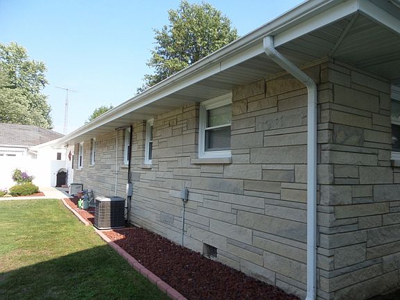 Very nice Bedford stone ranch style home in a great location. THIS HOME IS COMPLETELY HANDICAP ACCESSIBLE.... The living room and all three bedrooms are carpeted, however, there is hardwood under the carpet. The furnace, hot water heater and garbage disposals are all new. The cabinets are custom made. The home has a 1 car attached garage and an additional 2 car detached garage with heat was built 2 years ago.