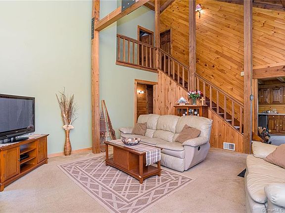 Tucked away on one of Southburys scenic mountain roads this quaint Pine log home sits in a mountain top meadow on twelve wooded acres. Charmingly unique warmth and cozy it was built with privacy in mind and offers awesome views. After a long day, coming home to this property will restore balance. No need to drive to Vermont youre already here. The property is surrounded by large tracks of state land and farms. Nature lovers come home to your secluded New England mountain top retreat. Living room has 20 cathedral ceiling and field stone fireplace, open kitchen/dining area, three bedrooms and extra multi use room. Take in the views from the front porch or the dining room. Built in 1984 original owner has maintained home with new roof 2017 and new furnace 2019. Convenient to I-84, this home would make a great weekend getaway but built for a year-round use. One of a kind, must see!!!