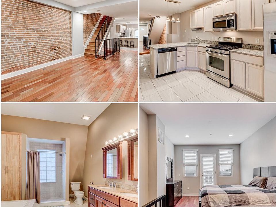 Fantastic Renovated Rental w/ 3 Large Bedrooms - each has it's own PRIVATE full bathroom. Spacious main level living area and open updated kitchen w/ stainless steel appliances, granite counter tops & large pantry. Hardwood floors throughout, fresh neutral paint. Finished basement perfect for office or extra storage. Laundry and 2 Bedrooms on 2nd level, one w/ private deck. Entire 3rd level is master suite with large walk-in closet and luxurious master bath with soaking tub, separate shower and dual vanity. Spacious deck off the 3rd floor master bedroom. Property has a parking pad & plenty of street parking! Great restaurants, bars/nightlife & the harbor just steps away. Easy commuter location; right off 95.