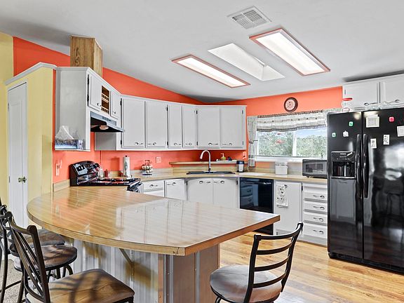 Open concept floor plan with a large kitchen with plenty of counter space and cabinets. Plenty of windows to enjoy the natural light and views. Owner has created walkways, flower beds throughout the property. Bring your imagination to enhance your outdoor living. Two covered decks. This property is zoned for horses. Plenty of room for all of your outdoor vehicles. RV pad