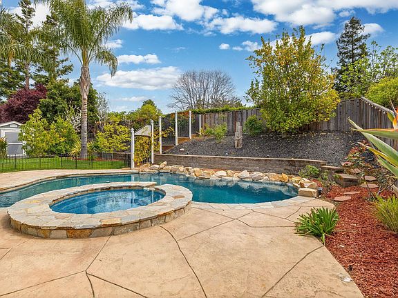 Single-Level Retreat with Poolside Paradise at the Base of Mt. Diablo Tucked away on a quiet cul-de-sac, this beautifully maintained 3-bedroom, 2.5-bath single-level home offers the perfect blend of comfort, space, and resort-style living. From the moment you arrive, you'll notice the lush, vibrant landscaping that frames the property—setting the tone for the backyard oasis that awaits. Step inside to discover warm engineered wood floors, a granite-countered kitchen, and multiple inviting living spaces including a spacious family room with a cozy fireplace, a separate formal living room with a flexible dining area, and a cheerful breakfast nook perfect for morning coffee. The backyard is where this home truly shines. Relax by the sparkling pool, host summer gatherings, or simply enjoy the serene setting with Mt. Diablo as your backdrop. There’s ample space for all your needs with additional gated parking for a boat or RV, plus a large shed for storage or hobbies. This is more than a home—it's a lifestyle. Quiet, private, and close to nature, yet conveniently located for everything you need. All this and an owned solar system. Come see why this one is so special!