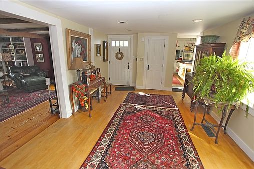 This renovated updated expanded Cape overlooks a scenic mill pond fed by a lovely brook. Glorious light & sunshine streams into south facing windows. Chefs in the family will love the gourmet kitchen. Enjoy coffee in the breakfast room. Entertain lavishly in the formal dining room adjacent to the library/music room. Get cozy in winter by the crackling fire in the reading room which opens to a home office. Indulge your green thumb in the solar heated sunroom/greenhouse. Upstairs master suite w/ample closets and luxurious spa-quality bath. Two more bedrooms share a bath. Expanded ell includes media room, pool table area & large home office. Upstairs artists loft or guest apartment w/2nd kitchen, 2 bedrooms, loft & deck overlooking the river. Garage and workshop under main house. Large separate barn for vehicles or animals & fenced paddock. A 5 minute walk to public swimming on Pleasant Lake.