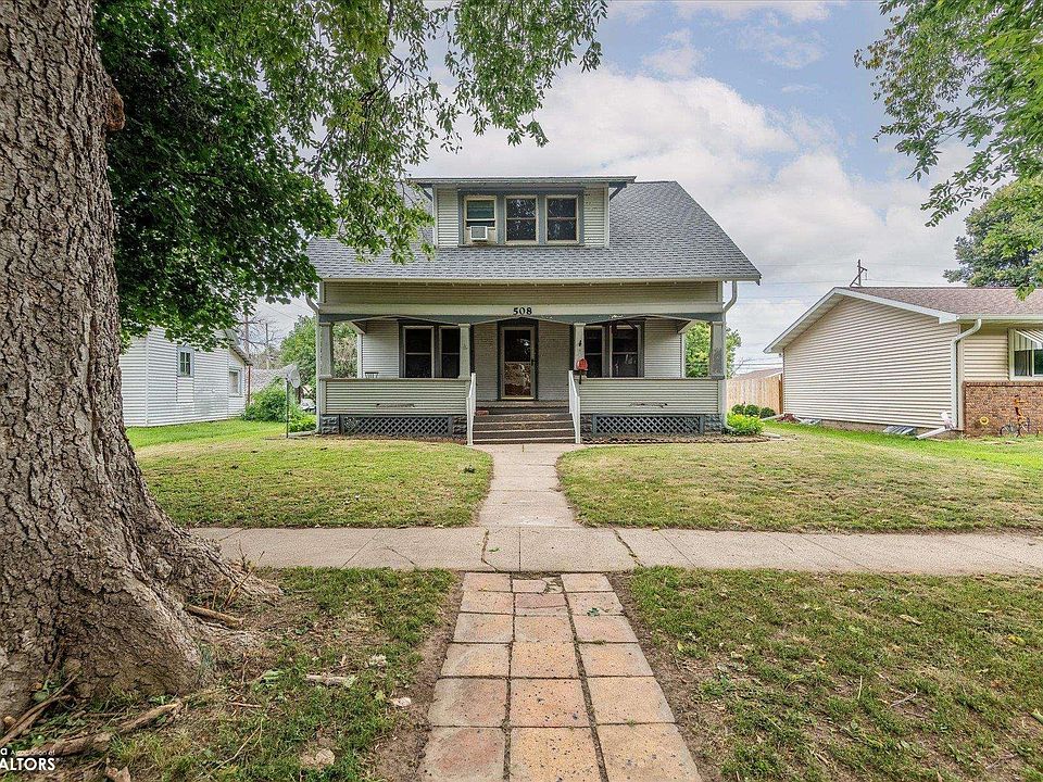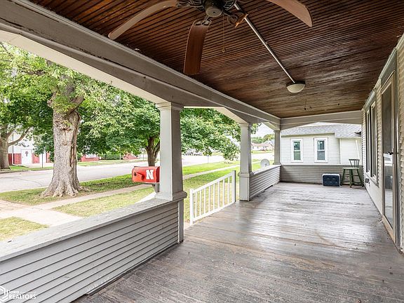 This craftsman-style home has character & boasts original woodwork & wood floors & oh! that front porch! Relax & unwind on the inviting open front porch, a perfect spot for enjoying your morning coffee or greeting neighbors. Spacious Layout: 3 BRs & BA are situated upstairs, & a versatile bonus room off the LR- on main floor, can be used as an office, playroom, or additional living space. Laundry is conveniently located on the main level & Updated vinyl windows provide energy efficiency while preserving the home's aesthetic appeal. The roof was replaced in 2022 & the lot has plenty of space for outdoor activities. Prime Location: Just a block from the school & downtown, & close to the CREW & park. Potential Galore: While it needs some TLC, this home has tremendous potential!