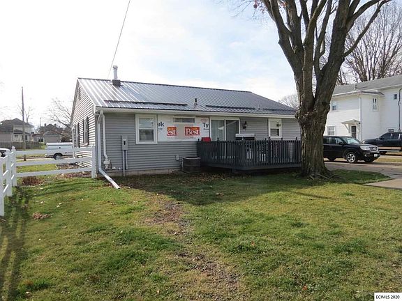 Updated Ranch is move-in ready ! Exterior has newer metal roof , vinyl siding, exterior doors, front porch and side entry porch. Vinyl fence and newly painted deck are in backyard. When you enter from new front door you will see the large living room with new paint , carpet, window coverings and lighting fixtures. LR opens to Dining Room with new wood laminate flooring, new paint. Sliding glass doors open to deck providing view of backyard. Kitchen has new flooring, cabinet doors ,hardware, counter top, fixtures, back splash and recessed lighting. Bathroom with double vanity, new flooring, tub-shower with glass door and all new lighting fixtures including dimmer switches was a complete redo. Both bedrooms have new carpet and paint. Lower level has family room, a 3rd non-conforming bedroom, shower and 1/2 bath, laundry and storage area. Furnace and electrical service all new in 2016. Detached 2 car garage has updated electrical and extra work space. This is a must see if looking for convenient living.