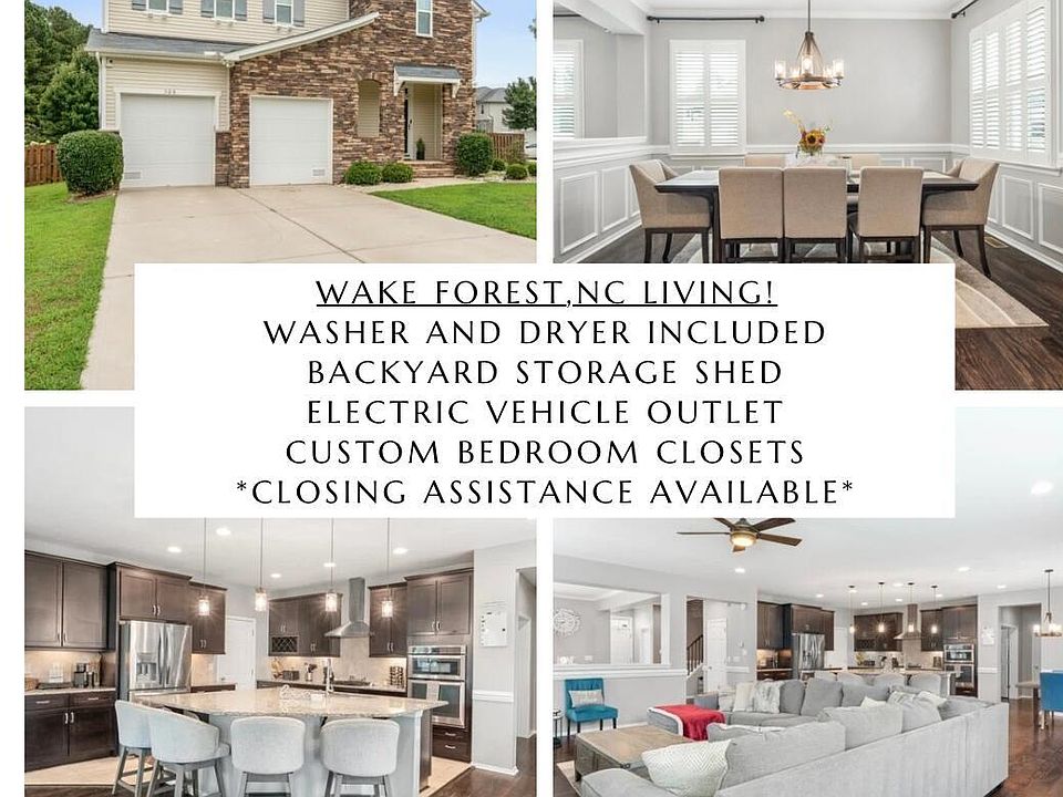 Just updated and ready for YOU! Fresh paint, sparkling clean carpets, and BIG $$$ to help cover buyers closing cost make this home a total win. Some houses just feel like home, and this one does exactly that. Perfectly positioned on the corner of a quiet cul-de-sac, this spacious Wake Forest home features the kind of open concept layout you usually only find in much higher priced properties. The oversized kitchen island easily fits the whole family and is sure to make your neighbors jealous with its incredible use of space. The dedicated home office offers a peaceful retreat for working or studying from home. Upstairs, a large loft welcomes you with endless possibilities, from a movie room or play area to a relaxing lounge space. Each bedroom is impressively sized, and the closets already come with built in shelving for easy organization. Outside, you'll find a fenced in backyard complete with a large shed for extra storage or tools. And when you're ready to explore, downtown Wake Forest is just a quick five minute drive away, perfect for evenings out, boutique shopping, and discovering the local hidden gems that make this community so special.