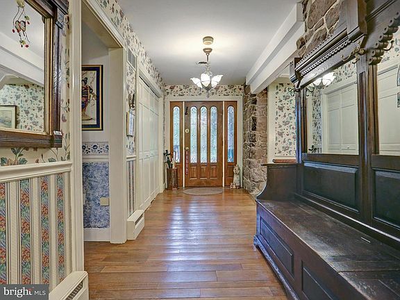 Spectacular 1825 circa stone farmhouse with 28 X42 ft addition that was designed by Joseph Farrel, professional in historical restoration, situated on 6 acres with 1/4 acre pond with stream. Master bedroom suite includes dressing room, with chestnut paneling that was cut from trees on the property, full bath. An additional 5 bedrooms, and full bath concludes the second floor. Main level of property includes large foyer with leaded stained glass front door and interior stone walls, large parlor w/fireplace, with access to screened porch. The formal dining room features hardwood floors, that leads to a casual dining area, and features access to outdoor deck area with playhouse. Spacious gourmet kitchen features cherry cabinetry, Corian countertops, 2 self-cleaning ovens, propane gas stove, dishwasher, and triple bowl SS sink, that leads to large laundry room with Cedar closet. Property also has a Summer House that features 3 rooms, full bath, and fireplace. LL features family room with pine flooring, stone walls, and a raised stone hearth fireplace, with pegged beam ceiling, game room with storage. New roof in 2018, Pella windows, solid wood doors, exterior recently painted, and 10 walk-in-closets. This is only a portion of the unique items in this historic property. First floor is handicapped accessible. Yesterday charms with todays amenities!