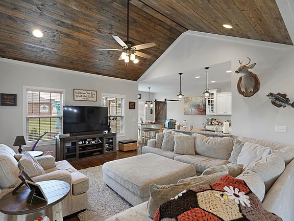 Here is a rare opportunity to purchase in the Fox Chase neighborhood. This wonderfully-appointed, one-owner home provides a split bedroom design with an open floor plan centered around a large living room with vaulted ceilings. The kitchen offers spacious granite counters and high-quality cabinets. Breakfast nook provides access to the great patio and big yard as well as the large walk-in pantry with sliding barn door. Primary suite features walk-in closet, tiled shower, soaking tub, and double granite vanities. The location is convenient to downtown Franklin, shopping and schools with an easy commute to Bowling Green and quick access to I-65. Playground equipment and trampoline can remain. No HOA.