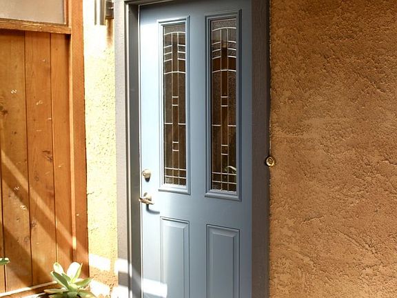 - Exterior features: Stucco, Wood