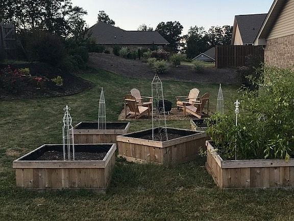 Beautifully appointed split-BR open floorplan home has 3 BRs PLUS an office with hand-scraped wood floors and all new light fixtures and ceiling fans. Gorgeous and unique custom shiplap & tile gas log FP. Spacious kitchen has a pantry & is open to living & dining areas; also has both gas & electric hook-ups available for kitchen stove. Master BR with lovely tray ceiling has wonderful MBA with double vanity & vessel sinks, separate shower, tub & water closet; spacious 12' x 5" walk-in closet with built-ins. The front porch has ceiling fans & pretty foundation plantings. Home is nicely landscaped with lots of lovely plants, a raised bed garden area (5 cedar boxes - 4' x 4' x 18"), a horseshoe pit, and a decorative wrought iron fenced back yard. There is an outdoor kitchen (cedar) and the new grill is negotiable. There is a fire pit area (fire pit is also negotiable). The composter is also negotiable; works great with the raised bed garden!