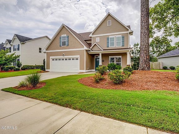 $3,500 buyer incentive with acceptable offer by January 5, 2023. This beautiful coastal style home, the Lynn Plan boosts an open floorplan perfect for entertaining!  Spacious family room with fireplace, open to casual dining room and kitchen.  Island in kitchen with undermount large single sink.  Granite countertops, white cabinets, stainless appliances, under countering lighting, lots of counter space, and pantry.  The Master suite is located on the first floor and offers two closets, master bath with dual vanities and shower/tub combo & water closet.  There is a powder room on the first floor for guests.  The second floor offers 3 bedrooms and two full baths, plus an office or 5th bedroom, and oversized bonus/recreational room.  2-car garage, nice fenced back yard with a 20 x 30 basketball court. New paint and carpets cleaned. Community offers trails, firepit, lake & park.  Convenient to I-40, beaches and downtown!
