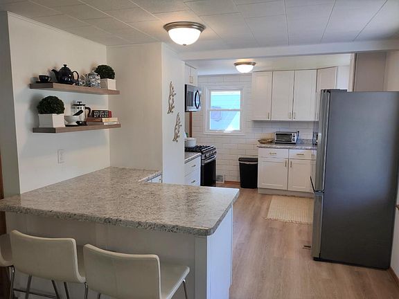 Nice City Home featuring 3 Bedrooms, 1 Bath, Beautiful New Kitchen with Stainless Appliances, Large Living Room, Screened Porch, 2 Car Detached Garage, Full Dry Basement, Fenced Yard, and Paved Drive. Recent Updates, Kitchen and Appliances - 2023, HW Heater - 2020, Bathroom Remodel - 2020, Furnace - 2019. This home is Move In Ready. Come take a look!