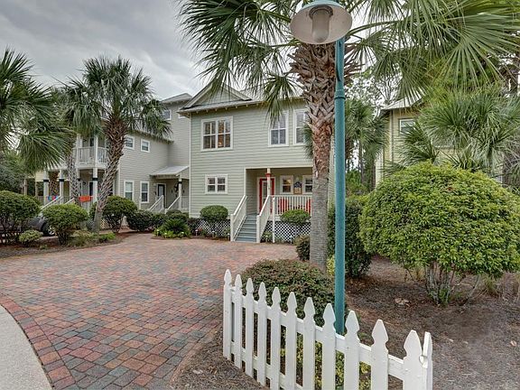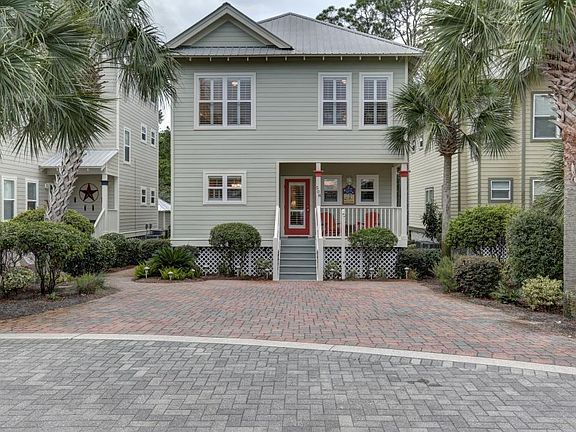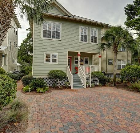 Incredibly charming, well-maintained, 2 story Florida beach cottage in the exclusive 30A community of Old Florida Village. Close to the beach, this quiet cul-de-sac community has 2 pools and lots of greenspace creating nice buffering between the streets and has no through traffic. You are greeted by a brick paver driveway and a large, cozy, covered front porch with a set of Adirondack chairs and a table. The 1st floor is very roomy and open. All the bedrooms are on the 2nd floor which allows much more living space. Beautiful oak floors grace the home along with crown molding throughout. Lots of sunny windows with plantation shutters give this cottage a warm and bright feel. The home is beautifully furnished and decorated and is being sold rental-ready. The large, open living room