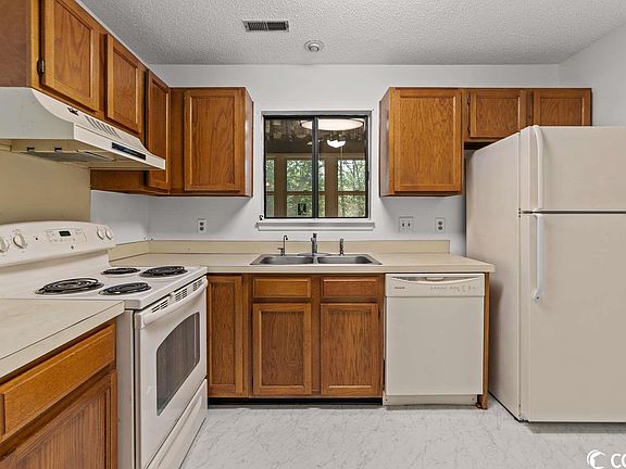 Don't miss your opportunity to own this 2 bedroom, 2 bathroom top floor unit in the quiet community, Indian Wells Golf Villas. This unit has been meticulously maintained, featuring a new HVAC system, fresh coat of paint in every room, a large open living area with tall vaulted ceilings making the unit feel even more spacious! The kitchen is equipped with all appliances, an abundance of cabinet and counter space, and an open window with a breakfast bar leading to the living areas, making entertaining a breeze! Each bedroom offers a ceiling fan, a walk in closet, multiple windows bringing in natural light, and access to its own bathroom! Enjoy afternoons relaxing in your heated/cooled screened patio with newly added flooring and all new window enclosures to make it the perfect Carolina Room! A storage room is also accessible from the Carolina room for added convenience. HOA includes pool access, interior and exterior pest control, water/sewer, trash, cable, common area electric, landscaping, and all roof/exterior maintenance and repairs. Indian Wells Golf Villas offers a community pool, pool house, and a covered picnic area, and is perfectly situated on the Garden City Connector, close to schools, grocery, all of the Grand Strand's finest dining, shopping, golf, and entertainment attractions, and just a short few minutes to the beach! You won't want to miss this. Schedule your showing today!