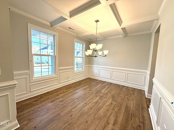 Last available Trillium floor plan! FIRST FLOOR PRIMARY! Pull up to this stunning home that offers painted fiber cement siding, partial brick, & a covered front & wrap around porch! The bright, open kitchen has dark grey cabinets, herringbone tile backsplash, quartz kitchen tops, & an island w/ a spacious sink. The island opens into the casual dining & family room which is perfect for entertaining. Family room offers trey ceiling & plenty of natural light! Formal dining offers more space for entertaining with a stunning coffered ceiling. Gorgeous laminate floors throughout the main level & primary bedroom. Primary bathroom includes beautiful walk-in tile shower & serene garden tub for relaxation! A spacious primary closet you need to see to believe! On the second floor you will find three bedrooms, and a nice loft for an additional gathering area. Pool community w/tot lot, clubhouse, and additionally, a beautiful pond within walking distance of home! Closeout community - limited opportunities remain!!