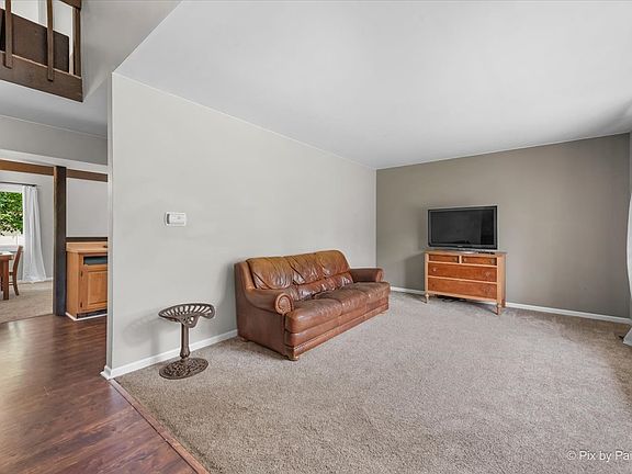 Cute cape cod in a wonderful neighborhood! 4 bedrooms (2 on the main floor and 2 upstairs) and 2 full bathrooms. Spacious main floor family room. Galley kitchen with pantry opens into vaulted dining & seating area with a wood burning fireplace & beautiful views of the large backyard. Pergola covered patio perfect for entertaining! Upstairs 2 large bedrooms and another full bathroom. Basement is partially finished including a wet bar. Water softener, furnace and AC all newer. Water heater 4 years old. Windows 3 years old. Roof, vinyl siding, tuckpointing & fence all within 5-10 years old as well. New LVP on main floor. Freshly painted basement. Brand new front door. Bathroom on main level recently redone. Microwave is broken and will not be replaced. There is a hookup for a dishwasher. No showings until Friday 7/26/24.