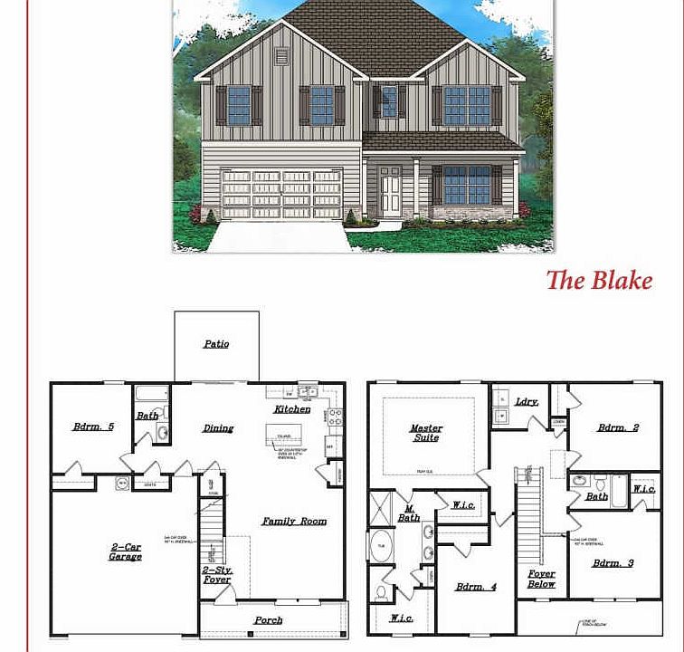 The Blake is our LARGEST floor plan offering 5 bedrooms and 3 full baths. The custom-designed interior finishes and color selections compliment the vaulted and 9' ceilings. Luxury vinyl wood plank adorns the great room, kitchen, and bathrooms, while upgraded carpet is in all bedrooms. Kitchen has an island, stainless steel Dishwasher, Stove, and Microwave with modern cabinetry and 42" wall cabinets for storage. The master suite has trey ceilings with a ceiling fan. Master bath has a garden tub, separate shower, raised vanity with dual sinks, and a huge walk-in lighted closet. Covered patio features a beautiful fireplace for relaxing in the evenings. Photos from different home, similar floor plan. Est. completion Late October.
