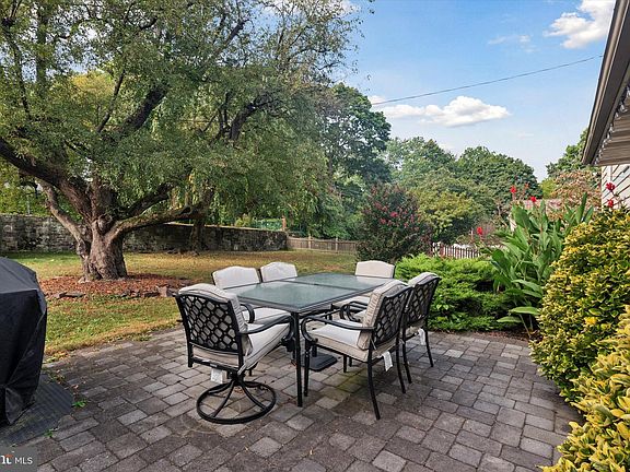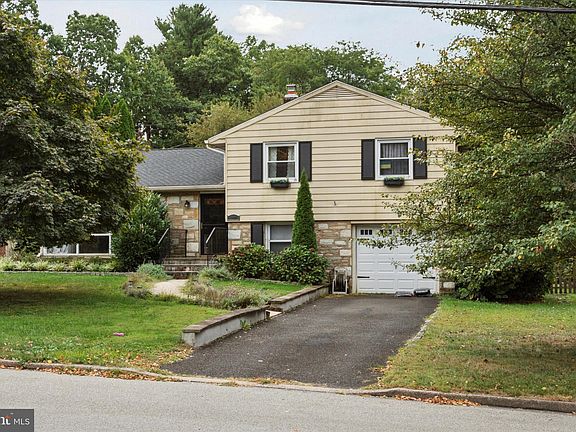 Come see the best backyard in Glenside! Located in a beautiful lush green neighborhood full of mature trees, this home has a large picture window overlooking the vast front yard and plenty of windows throughout to enjoy the views. Park in the garge or two-car driveway and enter in through the beautifully landscaped front. Inside you'll be welcomed by a large open floor plan living room, with hardwood floors, giant windows, and coat closet. This is open to the kitchen, with stainless steel appliances and plenty of counter space and storage, as well as the dining area, with sliding glass doors to a gorgeous stone patio that leads to the backyard. You'll be wowed by this fenced-in yard- with its old stone wall as a backdrop, beautiful trees, and mature landscaping. There are two patios artfully terraced into the yard, and a side garden with gate to the front, creating several level spaces for outdoor activities and entertaining. A few steps down from the kitchen is a large family room (or could potentially be used as an additional bedroom), with a half bath, laundry room, and interior entrance to the garage. This also has an exterior door that lets out onto its own stone patio as well. On the above floor, you'll find a large primary bedroom with ensuite bathroom, a full hall bath, and two additional bedrooms. This home is located in a quiet lush neighborhood, close to everything Wyncote and Chestnut Hill have to offer, beautiful arboretums and parks, as well as major highways like 309 and the turnpike.