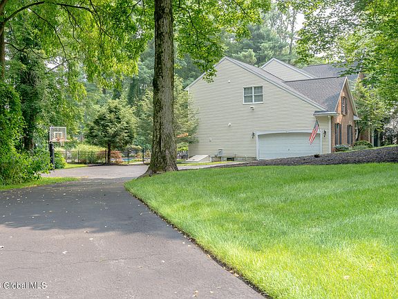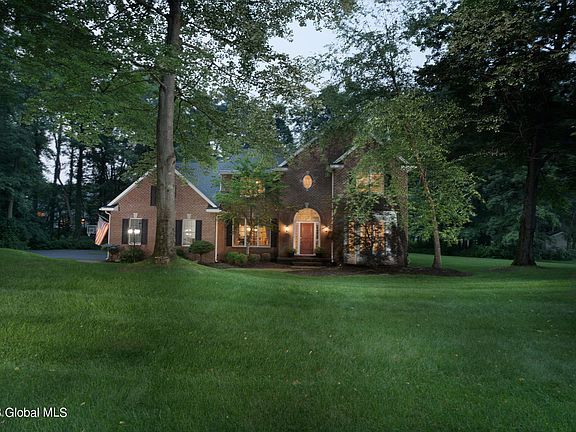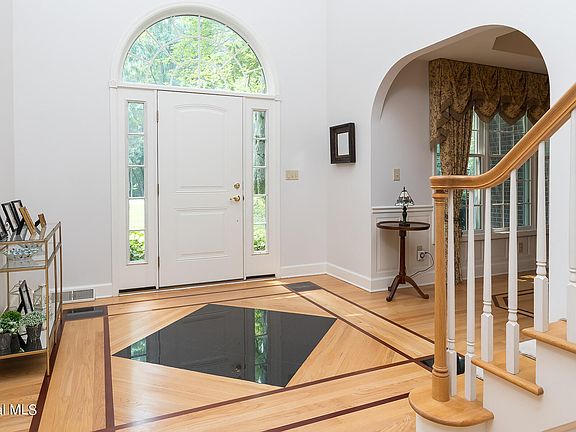 The house is a Marini-built custom colonial, emphasizing timeless architectural elements and craftsmanship. The first floor features HW floors with marble inlay in the entry foyer, adding a touch of luxury, and cherry inlay in the formal dining room, enhancing its elegance. Primary suites on both the first and second floors is a rare and convenient feature, making it ideal for multi-generational living. The FR boasts a brick fireplace and a vaulted ceiling, providing an inviting space for gatherings. The second-floor BR suite comes with a gas FP, which adds ambiance to the space. The fenced inground pool makes for fun outdoor activities, and its lighting allows for enjoyable evening swims. The finished basement provides additional living space and functionality. Gorgeous neighborhood.