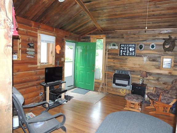 Showplace Fireplace! At the center of a free flowing floor plan is this classic rock fireplace. This cabin is well off the beaten path with 5617 acres of Melondy Hill State Forest across the road. Ideal for hunting or the weekend getaway! Enough beds for all of your friends or grandchildren. Stream across the bottom of land. With a little TLC this could be your home for years to come!