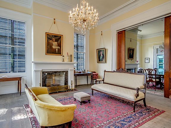 The spectacular antebellum Webb-Bonds House was built in 1855, and is on the National Register of Historic Places (NRHP). This majestic home sits on 13 wooded acres, its grandeur enhanced by the roof's bucketed cornice and full portico with six stately columns emphasizing the home's full hight. The interior boasts soaring 12-ft ceilings, 11'wide hallways, eight (yes, eight!) functional fireplaces, a modern kitchen with new stainless appliances, main floor master suite with beautiful updated bath. Much of the home has been restored to its original splendor, with opulent moldings and cornices. Much of the original hardware has been preserved, and many of the 7' windows are the original leaded glass panes. New HVAC system, updated electrical wiring, plumbed for a washer and dryer.