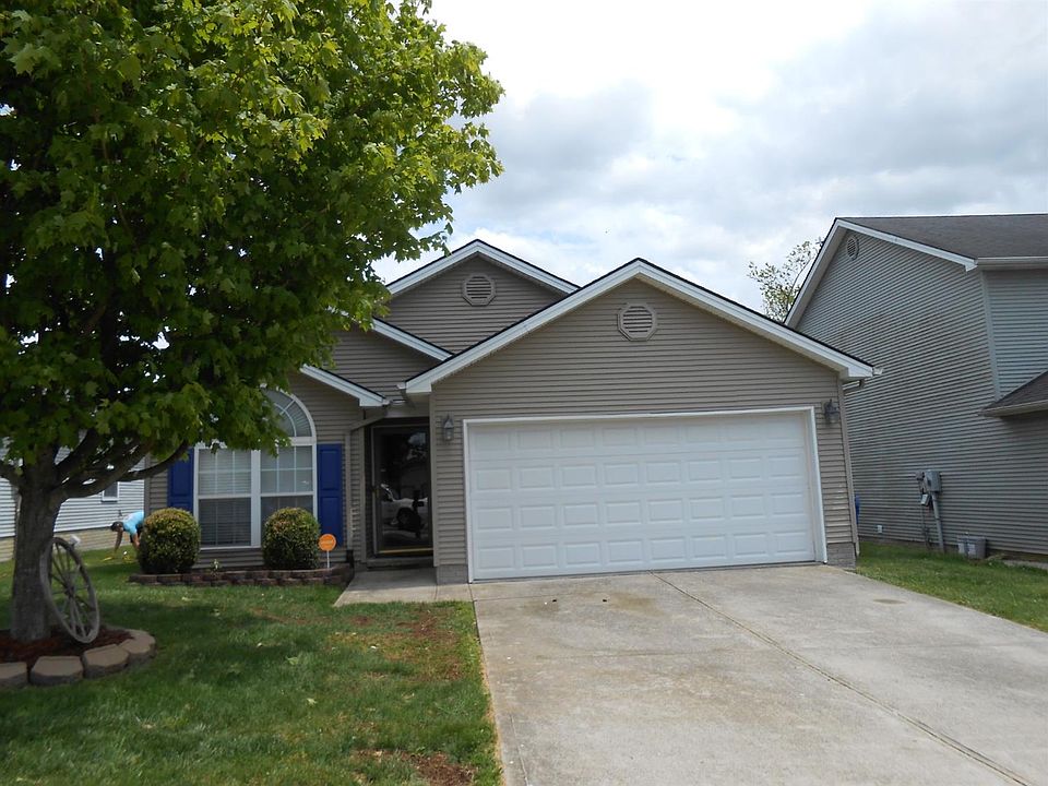 RARE find ranch has Prego flooring this three bedroom has large master bedroom with eat in kitchen all applications are staying TOTAL electric home- garage has cabinetry with epoxy flooring-has a large rear yard with privacy fencing backs up with lots of trees act fast because will NOT last long on market!One (1) year home warranty is waiting for NEW Owners! Average water bill family of four is $130.00 and electric KU is average of $150.00