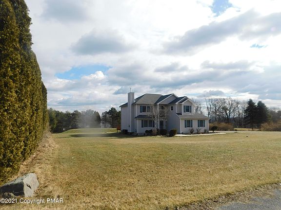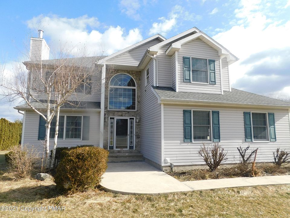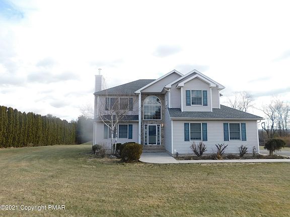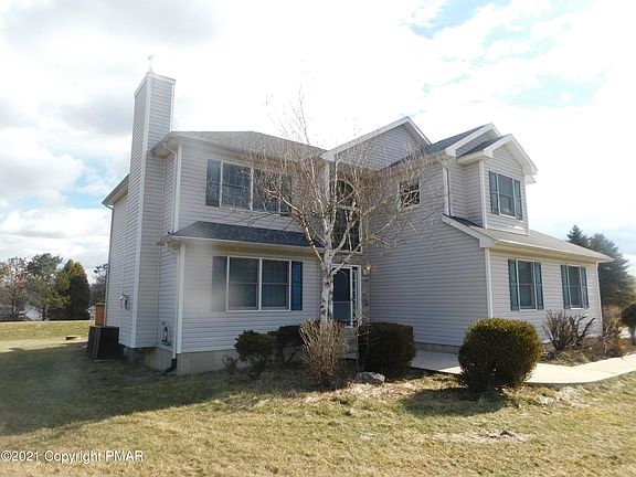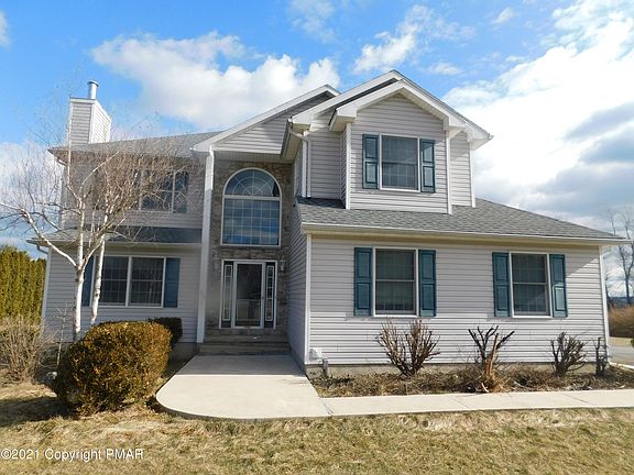 Large 5 Bedroom Colonial w 3 full baths. Living Rm, Family Rm, Dining Rm. Master Suite has Whirlpool Tub & Tray ceilings. Full finished BASEMENT. Water neutralizer & softener . Two (2) Large Expansion Tanks. Oil heat w/ backup Propane heated fireplace; Central A/C , fans throughout. 2 Car Garage. 12' X 40 deck. Storage Shed. FLAT, Manicured Lawn, Paved driveway. NO dues!! Convenient to the Crossings at Tannersville. All other Shopping; Hospitals, Schools, Restaurants. Route I-80.