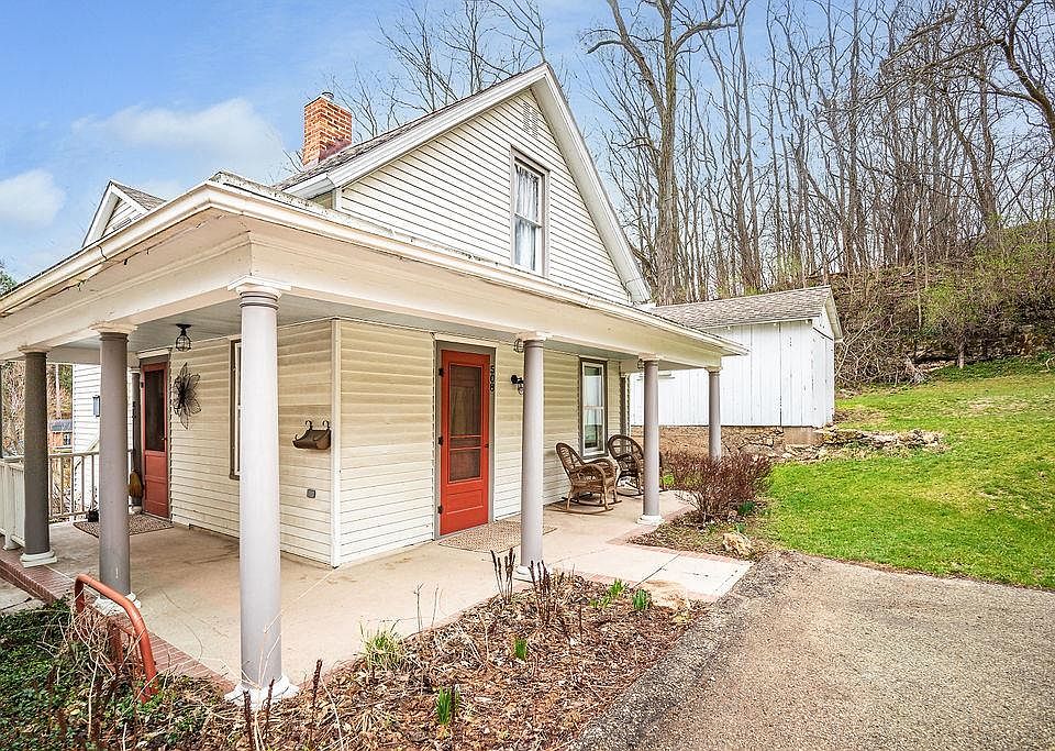 Charming cottage close to historic Main St. Galena, Located on a private cul-de-sac. Panoramic view from the kitchen, deck and backyard. Lovely wood floors throughout this home. Spacious eat in kitchen with ample cabinets, storage closet, laundry and access to beautiful full bath featuring subway tile and penny tiled floor. Exposed brick work on main and upper floors. Large closet under stairs. Upper level has charming sitting room that could be used as a tandem bedroom, and spacious master bedroom with multiple closets. Large storage and garden shed. Outdoor living space allows you to enjoy the front and side porch along with the deck off of kitchen. List of improvements etc on Assoc Docs