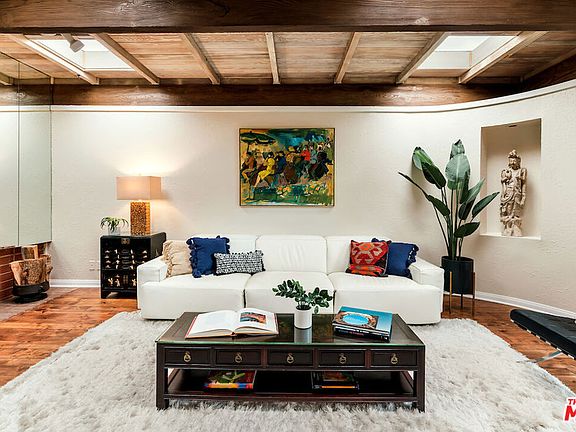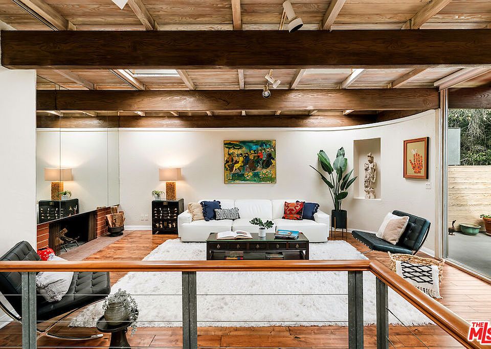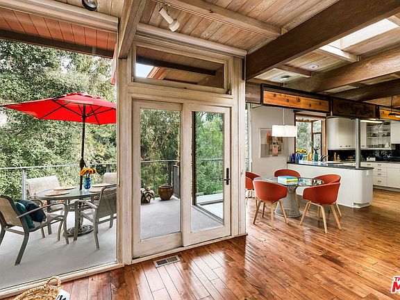 Nestled in the serene hills of Brentwood, 508 Greencraig stands as a Mid-Century Modern Haven within the coveted Kenter Canyon Elementary Charter School district. This tranquil residence promises a lifestyle marked by peace and privacy. The quietude of the neighborhood complements the home's design, which harmonizes with its natural surroundings to offer a genuinely serene living experience. The home's exterior invites relaxation and outdoor living, with expansive decks that provide secluded spots for dining or lounging amidst the treetops. The backyard, a canvas for creativity, offers ample room for a garden, further enhancing the connection with nature. This home is ideal for those who cherish tranquility and the outdoors, offering endless possibilities for personal touches inside and out. The residence is illuminated by floor - to - ceiling windows and skylights throughout, ensuring that each room is bathed in natural light. The living spaces exude warmth and elegance, creating an inviting atmosphere. The central fireplace in the living room adds a cozy element, making it the perfect spot for gatherings or quiet evenings at home. The kitchen opens seamlessly to the dining area, making it ideal for entertaining. The primary bedroom, a serene retreat on the lower level, alongside two additional bedrooms, ensures comfort and privacy for all. This Brentwood location is a statement of living in harmony with one's surroundings, making it an exceptional choice for those seeking a peaceful retreat from the bustling city life.
