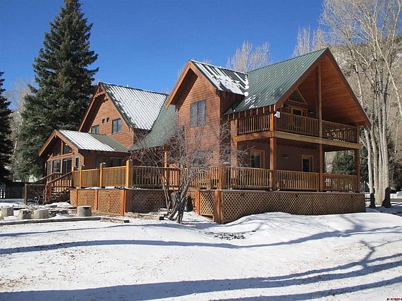 Beautiful custom built home situated on 5 lots in the Limited Multi-Family District Zone within the Town of Lake City. Originally constructed in 1985 with a large addition in 2016 and some upgrades in 2020, the cedar sided home offers 3,164+/- sq. ft. with 6 bedrooms, 3 1/2 baths, vaulted 2-story T&G ceilings in living area, tile floors, open living/kitchen/dining area, oak cabinets, east facing sun room with built-in storage, efficient Rinnai heater, free standing woodburning stove, electric baseboard heat, main floor master with 3/4 bath ensuite and private access to covered deck, and a main floor guest bedroom with 1/2 bath and private entrance from covered deck. The upstairs offers a loft area with open efficiency kitchen with hickory cabinets and 4 guest bedrooms and/or office/craft/media rooms with the 2 north rooms offering cathedral ceilings and private access to the covered balcony with north mountain valley views. An added amenity is the large floored attic space for additional storage needs. The home will be sold mostly furnished and ready to enjoy year round or seasonally. Additional amenities include ample storage space, custom fire pit off of back deck, partially fenced yard and detached 3-bay garage with double entrance doors. Home is within the Residential Treatment Area of the Town of Lake City Historic District and any exterior additions or modifications will need to be approved by the Historic Board. Any short term vacation rentals will need to be have an approved Permit by the Town of Lake City. Ideal location within walking distance to the Lake Fork of the Gunnison River, Lake City Community School, Churches, Town Park, restaurants, shopping and walking trails. Please contact broker to schedule your showing.