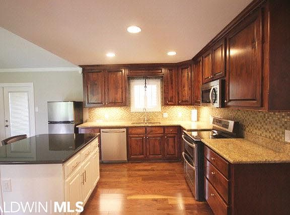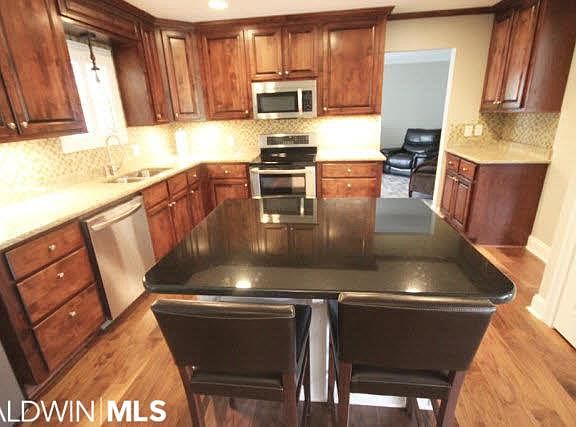 Location Location Location! This completely redone home has upgrades galore & is just blocks from downtown, close to the bay & Fairhope elementary school. Open flr pln is great for entertaining & has both a family rm and another rm that could be used for a bonus rm, play rm, or office. House features new hardwood floors, kitchen island, kitchen cabinets, stainless appliances, under cabinet lighting, plantation shutters, kitchen backsplash, granite countertops, smooth ceilings, crown molding, & brand new AC. You won't believe the master suite which is huge w/a bathroom that boasts soaring ceilings, custom tile shower, separate tub, granite counters, & custom closet designed for making the most out of your closet! Guest bath complete with custom tile work, new fixtures, & granite topped vanity. New screened porch overlooks a huge fenced in backyard w/lush landscaping & a workshop/storage building with electricity. Tons of space for parking & 2 carports w/room for boat. Fairhope jewel!