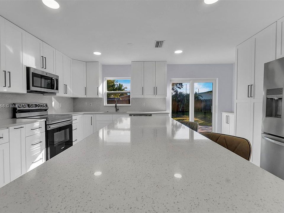Beautiful 4 Bed and 2 Bath. This house boasts a new kitchen with stainless-steel appliances, quartz countertops, and a garden view to enjoy while cooking! It is an open floor plan with porcelain floors throughout and offers plenty of natural light! New AC and WH. The whole house is renovated. Enjoy the backyard with your family and friends for gatherings! This neighborhood is safe and family friendly! No HOA and no restriction, investment opportunity for vacation rentals or year around. Located just minutes from shopping, dining and great school district.