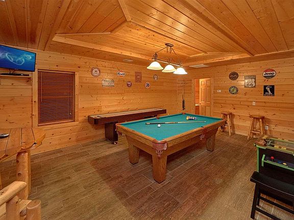 Great income producing cabin, In The Heart Of Pigeon Forge! Cabin is located less than 3 minutes off the parkway in Pigeon Forge on Ogle Dr. With several updates over the last 2 years, this cabin produces over 80K is gross income and already has over 60K for 2020. Step inside this cabin on the ground floor and you'll find the cabin's theater room and a game room complete with a 9 ft shuffleboard, an air hockey game, a cocktail arcade table, and a pool table. By heading upstairs, you'll find the cabin's nice living room area complete with a gas fireplace, the perfect place to spend quality time with friends and family. From here, you can step outside on the deck to take a dip in the hot tub to enjoy the forested view. This cabin also features several practical amenities like a full kitchen, a dining area, a washer/dryer, WiFi Internet, and an outdoor grill. Cabin features 5 bedrooms. Each of these rooms comes complete with flat-screen televisions. Altogether, this cabin provides 3 king-size beds, 2 queen-size beds, a twin bunk bed, a sleeper sofa in the living room, and a twin-sleeper sofa in the loft. Updates include: New furniture with commercial quality sofas, arcade-air hockey-shuffle board, LVT flooring in bedrooms that had carpet, 3 new mattresses, and exterior security cameras. Call today to schedule your private showing. SEE ADDENDUM FOR SHOWING INSTRUCTIONS.