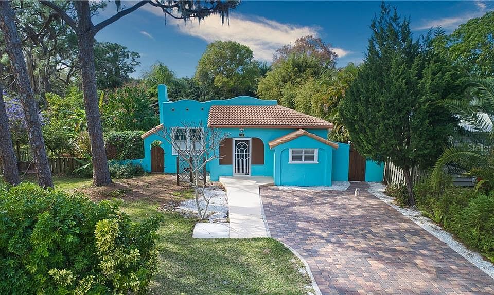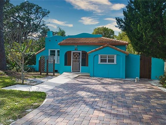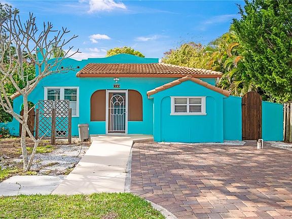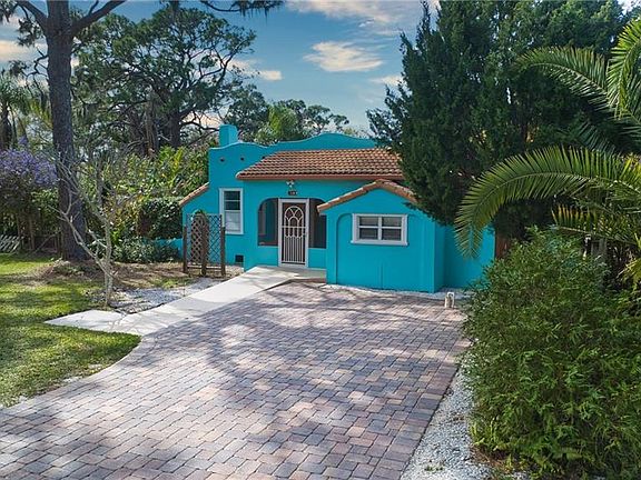 CALLING ALL BEACH LOVERS! Such a charming Spanish style bungalow & it's just 5 minutes from Nokomis Beach where you can sun, swim, watch a sunset, fish or launch your kayak or boat. Great little neighborhood for taking evening strolls & riding bikes. Sits on a double lot that can be divided for building a new home. Or leave it as it is & enjoy the vastness & the privacy of your fenced backyard with mature landscaping & fruit trees. Two sheds with one being almost 10x18 so there is plenty of room for storage. Step inside your front door into quaint & cozy. The living room has real wood floors & a fireplace (currently not working) gracing one end. LARGE closet in the living room. Arched doorways into the dining room & bonus room. The bonus room could be used for a 2nd bedroom. One end has a cute little alcove area & the other end is wall to wall built-in cabinets. The kitchen has been updated with newer cabinets, counters & vinyl plank flooring, but still has that quaint little bungalow feel. The dining room, though small, could be so adorably decorated! It also has a real wood floor as does the bedroom. The bedroom windows let in just enough natural lighting & there are 2 separate closets. Again, in the bathroom there is a full-length window that looks out to a garden area that could allow for great natural lighting & privacy. A/C is less than a year old. Whether this is your every day home, your winter home, summer home or an Air BNB; it just needs to be yours!