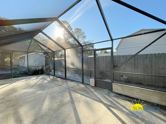 This beautifully updated 1-bedroom, 1.5-bath gem ideally located in Fort Walton Beach, just minutes from both military bases, top-rated shopping, dining, and entertainment. Step inside to find an inviting open-concept living and dining area, featuring modern tile and LVP flooring throughout. The kitchen boasts a breakfast bar, walk-in pantry, gas stove & oven, mounted microwave, refrigerator, and dishwasher, perfect for everyday convenience. The primary suite offers a walk-in closet and a private bath with a shower-only layout. Enjoy added functionality with washer & dryer hookups, ceiling fans, and an auto garage door opener. Outside, you'll love the oversized screened back patio, ideal for relaxing or entertaining, plus a nice exterior storage workshop (as-is) for all your hobbies or tools. The home includes a 1-car garage, driveway parking, and landscaping services are included for easy maintenance. You do not want to miss the chance to call this magnificent unit home!