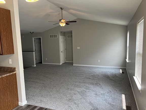 This beautiful ranch can be your dream home! This house has a large open floor plan, vaulted ceilings, master suite. Ceiling fans in the great room and master bedroom. 12 x 12 deck. Two car garage! full unfinished basement. Tenant pays all utilities, cuts and maintains grass and removes snow from driveway &/or sidewalk, just like owning your own home! Minutes to highway 70 & 40. Backs to wooded common ground Tenant is responsible for all utilities and cutting and maintaining the lawn. No smoking in the house.