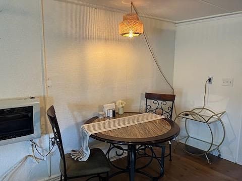 Country setting.... one bedroom furnished apartment with open floor plan in living room, dining room and kitchen. Wall a/c unit. Furnishings include dishes, pot and pans. Screened front porch. No washer/dryer connections. However a laundromat is about 1 mile away. No Smoking. No Pets. Six months lease. Utilities included in rent/one tenant. Two tenants will require additional cost for utilities. 6 months lease then month to month. No smoking. Utilities are included in the rent. Tenants responsible for their part of the yard maintenance, could pay $30 each mowing. Designated parking.