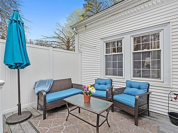 This sunny Cape Cod-style home located on beautiful Pleasant St, near the schools and the country club, exudes charm and character with French doors, soft coastal colors and refinished hardwood floors! The kitchen features stainless steel appliances, a gas stove, and granite counters. The first floor offers a full bath with laundry, a breezeway, a bedroom and a sunroom that leads to a private deck and an expansive backyard with gardens and a shed, perfect for the garden enthusiast! French doors lead to the front to back living room and dining room with a propane fireplace and built-in bookshelves. Upstairs there are two large bedrooms; one with vaulted ceilings and double closets. There is also a ½ bath on the second floor for family convenience. Don't miss out on the opportunity to make this beautiful home yours! Be sure to watch my virtual tour attached to this listing! First showings will be at the Open House Saturday 5/6, from 11-2. All offers due 5pm Mon 5/8.