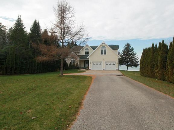 Sitting on the porch of this fantastic home on Burt Lake's east shore watching the amazing sunsets will make the worse day a little better. Swim from the sand beach or enjoy refreshments on the waterside balcony. The master suite offers his & her private bathrooms with an additional 2 bath suite on the 2nd floor. Other major features include large waterside living room, kitchen, and dining room, family room & full basement.The 2 bedroom, full bath guest house with living and dining area and a full kitchen sits atop the 36'x50' detached garage making it the perfect place for additional guests