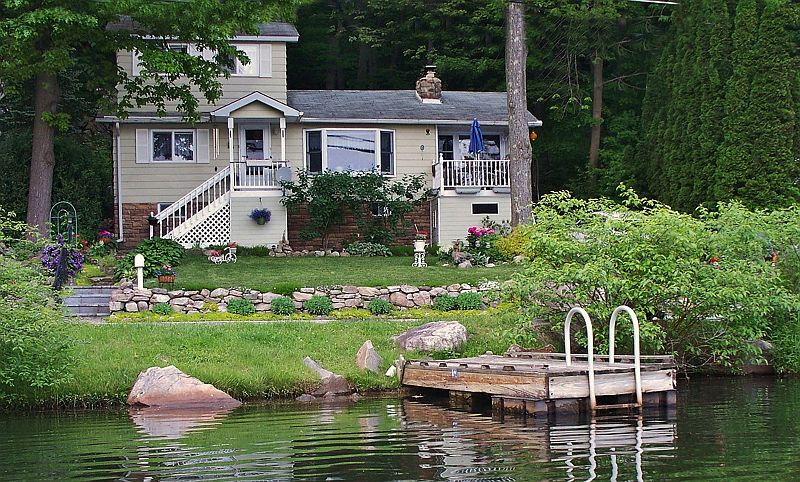 LOVINGLY MAINTAINED HOME ON ONE OF THE COMMUNITIES PRISTINE LKS. THIS CHARMING COTTAGE OFFERS WINDOWS & BALCONY ACROSS THE FRONT OF THE HOUSE MAKING THE MOST OF THE VIEWS. TWO BEDROOMS UPSTAIRS AND A EASILY CONVERTED 3 BEDROOM ON THE MAIN FLOOR. NEW CABINETS, VAULTED CEILINGS, AND SO MUCH CHARM. WALK IN CLOSET, UPDATED BATH AND WATER FEATURE ON THE VERY PRIVATE DECK IN THE YARD.