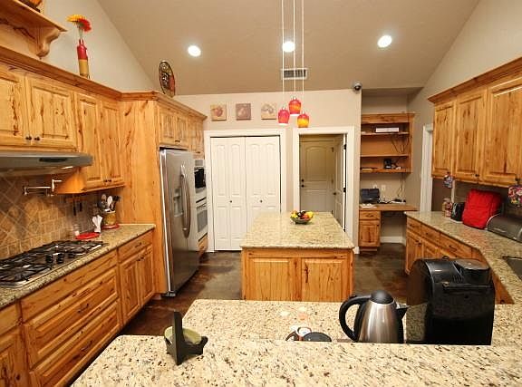 Beautiful and quality built...this home has special amenities that take it up a notch! Lovely German Beechwood cabinets in the kitchen with a 5 burner gas cooktop, pot filler, double oven, large island and breakfast bar, this kitchen is a dream! There is a formal dining, large living and 4 bedrooms so plenty of room! The Trex deck spans the entire back of the house and over looks the acreage and pond. Amazing views and truly, a must see!