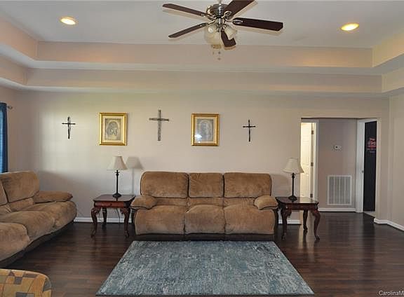 Charming 3BR/2BA home in a culdesac. Large living room with double tray ceiling and recess lighting. Massive size master bedroom with vaulted ceiling. Master closet is everyone's dream closet. Tall vanity size cabinets, garden tub/shower combo. Cozy kitchen with modern cabinets. Stainless steel appliances with smooth top stove and built in microwave. Split floor plan. Large laundry room with hot water heater inside the home. Wood deck on the back of the home for entertaining. Concrete driveway. 2019 new HVAC, 2020 New Roof, french drain, hot water heater, gutters. This lot is beside Chester Golf Course and within minutes to I-77. Come and view this Culdesac home with county taxes and a rocking chair front porch.