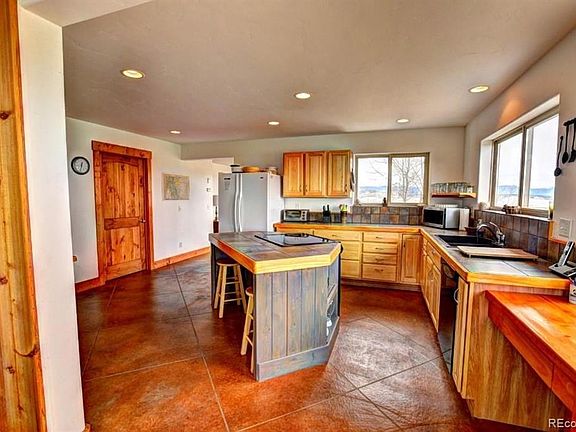 A Mountain Getaway! Unique 38 acre spread, the house nestled into an aspen grove, awe inspiring 180 views of miles of rolling ranch lands surrounded by mountains. HORSES WELCOME! The house comes fully furnished. The ground floor is radiant heated stained concrete. There are two steel outbuildings. A 24x30 shop with 220V 50 amp service. The other building, 20x80 can store 4 cars, can be converted to a STABLE. The home is located just 1.3 miles from 285. There is no HOA! MOTIVATED SELLER.