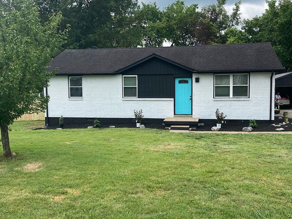Super cute updated ranch with new flooring, paint and just installed 10K HVAC with 10 yr warranty. 1/2 acre lot. Open plan with remodeled kitchen and newly painted cabinets with butcher block countertops, tiled walls and, remodeled and painted bathroom, separate laundry room with washer and dryer, 2 car detached garage/workshop newly painted. Exterior has been fully painted and renovated. Deck is newly painted and restored. New privacy fence. Storage barn, and pretty landscaped yard with a line of trees backing up to a field. This is a beautiful place to raise a family or have privacy and peace.
