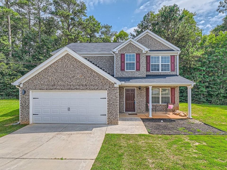 Welcome to this beautifully maintained four bedroom/3bath home in the well maintained community of Princeton Village in Palmetto, GA. This two story brick fronted home is located at the end of a quiet cul de sac. As you walk into the entry foyer of this lovely home you are greeted with a nice sized dining room with upgraded lighting on the right. Walking through the entry foyer you enter a large great room which overlooks the breakfast room and nice sized kitchen A large secondary bedroom and full bath is off the great room. The laundry room is off the secondary bedroom and garage. The spacious primary suite includes a walk-in closet and large bath with soaking tub, separate shower and double vanities.. Upstairs also has two secondary bedrooms and a full sized bath as well as a large bonus/media/family room. Lots of storage and closets. This community boasts a lovely pool with pool-house, tennis courts and a fenced playground.