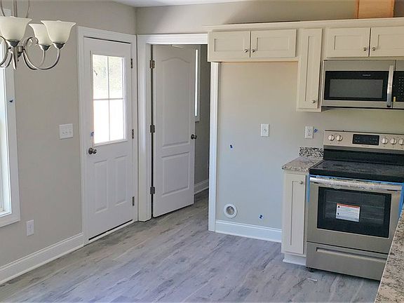 Cute New Construction plan has 1300 sqft & a 1 car front entry garage! LVP floors in the living rm & kit/dining combo. Granite c/tops & SS appl in the kit. Cathedral clg & corner gas log fireplace in the living rm. Split bedroom layout offers a private master bedroom w/a large walk-in closet & en-suite bath w/a double vanity. Covered front porch. 12x12 rear patio has access from the kit. Vinyl siding, heat pump, city water!