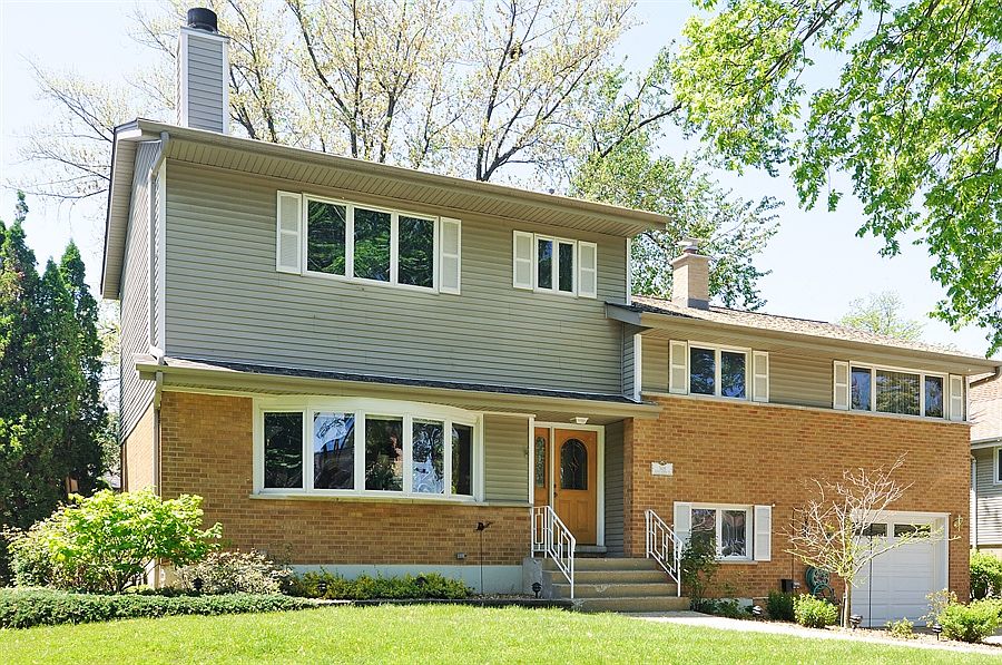 Expanded multi-level in Lions Park offers 3 bedroms with upper level Great room offering vaulted ceilings - 2 skylights - wood-burning brick fireplace, wet bar, balcony deck and full bath or the ultimate master suite! Updated - open plan kitchen with Quartz counters - cherry cabinets, stainless steel appliances and hardwood floors throughout. Walk out family room to patio/fenced yard. New roof and chimney 2014. 2 car wide concrete drive