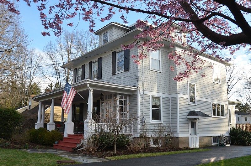 Proudly anchoring Pennington's South Main Street, this beauty celebrates its heritage by retaining so many classic features along with multiple well-thought updates and expansions. A lemonade front porch lets you watch the world go by, while a deep yard with 2-car garage provides abundant space to garden and take in the scenery. Inside, the charm of yesteryear is interspersed with 21st century luxury including a dream-worthy kitchen renovation and master bath addition. The living room has been enhanced with built-ins on either side of the gas fireplace and marble surround. Wood and marble counters decorate the kitchen as does a Lacanche range for pro-style cooking. The three season porch with fireplace is downright lovely with doors to the deck. Upstairs, four bedrooms are all sunny and spacious. A remodeled hall bath supports the ancillary bedrooms, while a gorgeous marble en suite adjoins the master. A finished third level offers limitless possibility with a full bathroom.